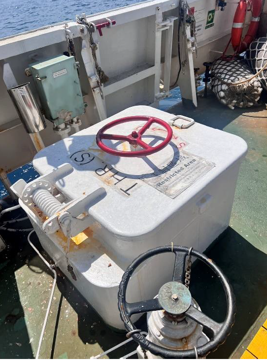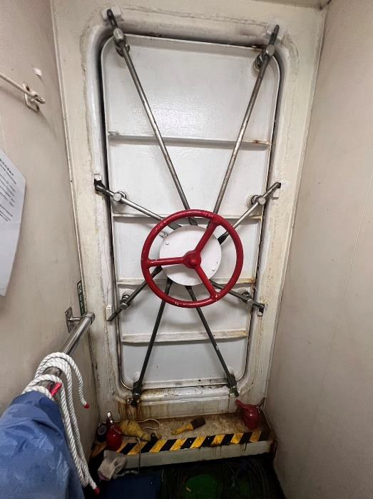 船艏兩個逃生孔水密門、船尾兩個逃生孔水密門、一個長方形水密門碰墊硬化龜裂現象,未達到完全水密效果,進行維修更換。